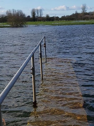 Photo 2: The bungalow platform underwater at Winterborne Zelston. With a river running into the lake in the distance.